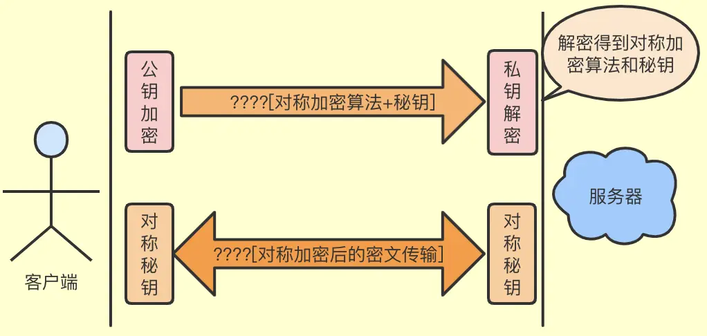 - 使用非对称加密传输协商一个对称加密算法和秘钥