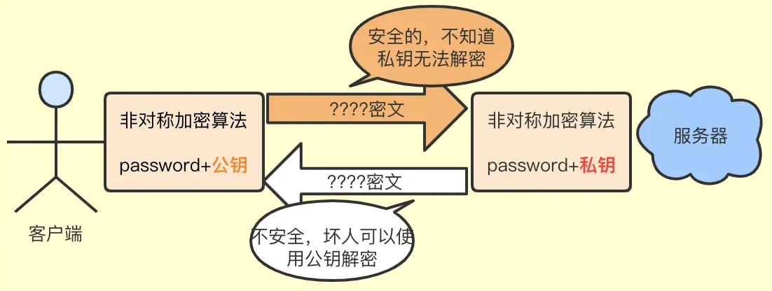 - 只要把私钥保存在服务器,公钥发给客户端,那么客户端向服务器发送的数据就是安全的,但是服务器向客户端发送的数据坏人也可以通过公钥解密