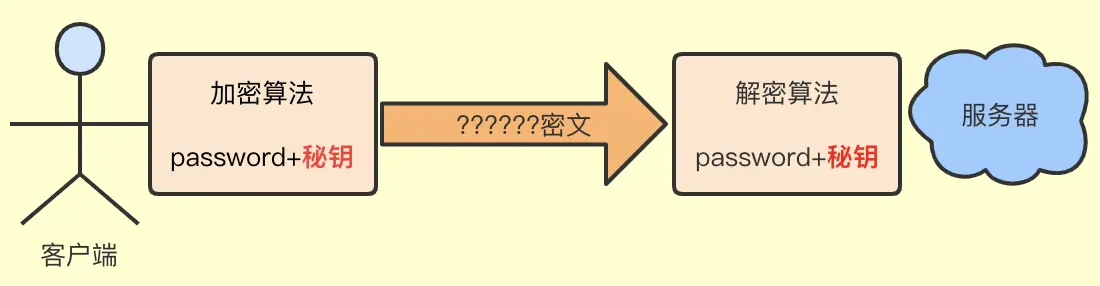 - 如果不知道秘钥,是无法解出对应的明文,但是如果所有客户端都用相同的秘钥,相当于没有加密,坏人也可以作为一个用户拿到秘钥。